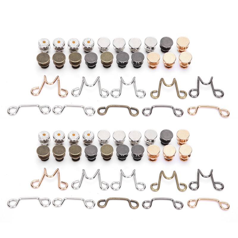 1、No need to buy new pants or belt, using this button attacher to tighten the waistband, then get a perfect fit. With different colors for you, you can match your pants in different colors. 2、Made of high quality alloy material, that is sturdy, durable and not easy to get erosion. It won't bend or shatter under finger pressure. 3、Easy to install, poked the pin side through the hook and material, aligning the pin with the button cap, and gently closed it. 4、Without tools, seamless, detachable, reusable, with those no‑nail adjustable waist buckle, which can be adjusted according to your waistline size. 5、It is widely applicable to your pants, skirts, or other loose and wide clothes. When you work or travel, the stitch‑free design allows you to install these waist buckles more freely, which is simple and convenient.