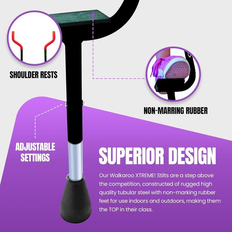 Adjustable Walkaroo Xtreme Steel Stilts for Kids - Indoor/Outdoor Play, Exercise, Height Adjustable, Up to 250 lbs, Black - Color: Red