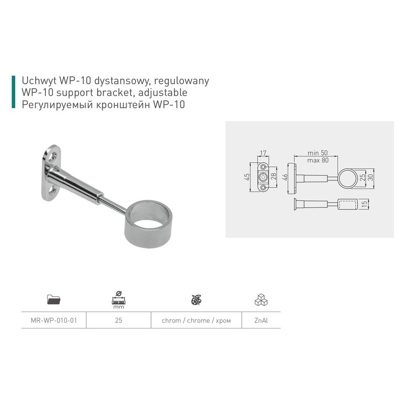 Adjustable Wardrobe Rail Centre Support for use with 25mm Rails