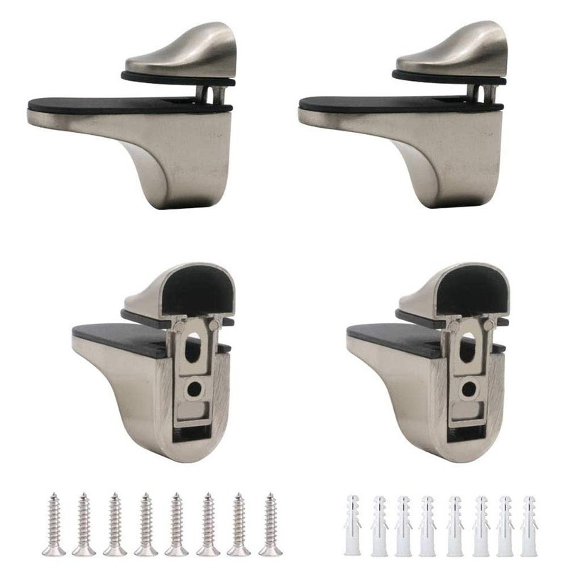 Adjustable Wood/Glass Shelf Bracket Wall Mount, Brushed Nickel, 4 Pack