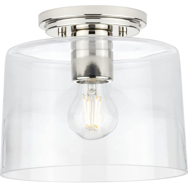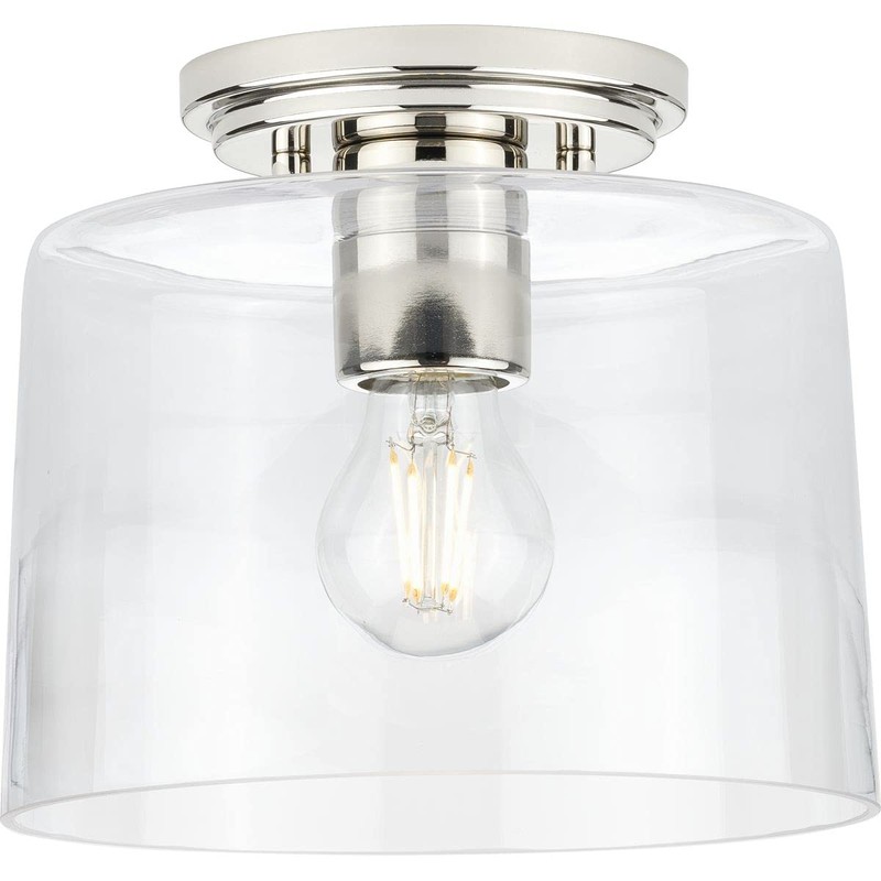 Adley Collection 1-Light Clear Glass New Traditional Flush Mount Light Polished Nickel