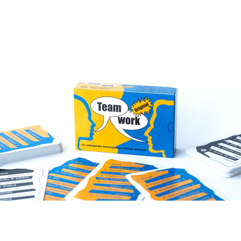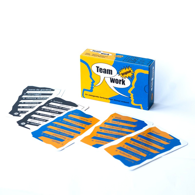 - As a quick and easy card and party game, Teamwork is ideal as a souvenir or gift and invites you to learn playfully as a four-language version (DE/EN/FR/IT).
