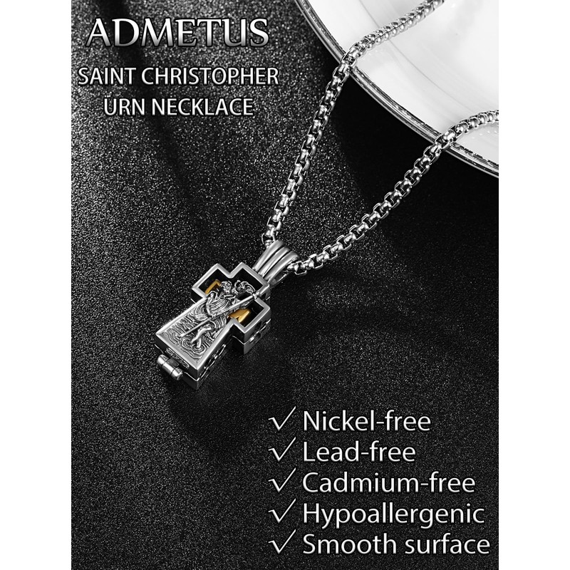 ADMETUS St. Christopher Urn Necklaces for Ashes Sterling Silver Saint Christopher Urn Necklace Catholic Cross Keepsake Pendant Religious Cross Cremation Jewelry Memory Gifts for Men