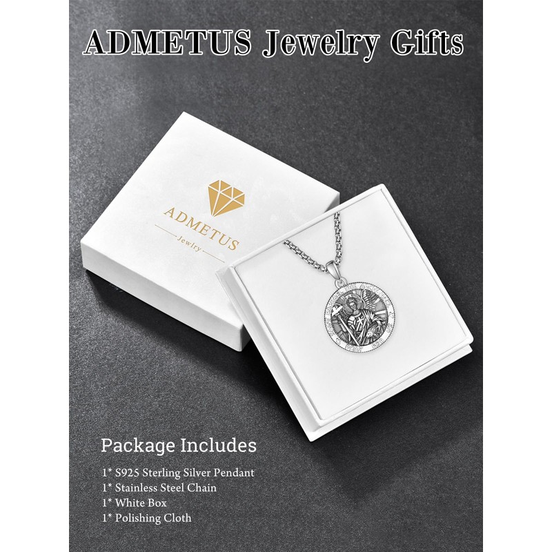ADMETUS Sterling Silver St Raphael Necklace for Men Saint Raphael The Archangel Medal Amult Pendant Protection Jewelry Religious Gifts