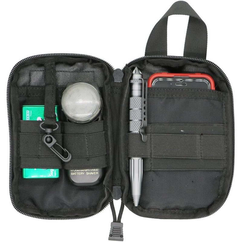 - KEEPS CONTENTS SAFE: Versatile Tactical Belt Pouch securely holds small tools and accessories like, phone, card, pen, pliers, mini flashlights, screwdrivers. Utility accessories and tactical attachments for on the go.