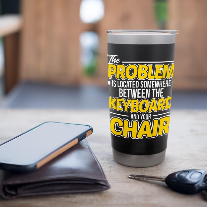 - You love Information Technology and Technology? Then this great Computer Design makes a great gift for a Admin who loves to go for a Supporting. Funny saying with: The Problem Is Located Between Keyboard And Chair