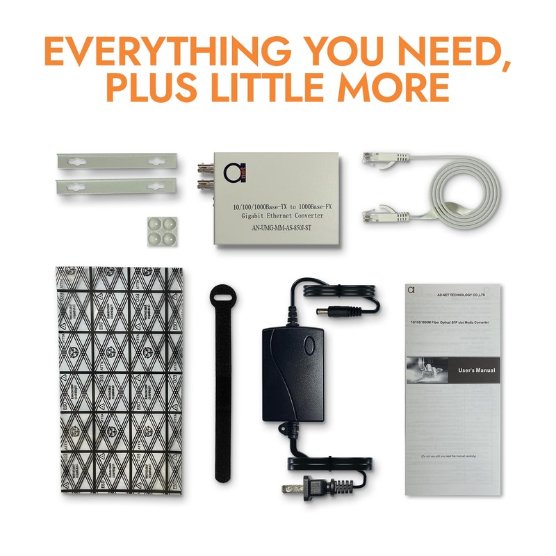 ADnet Multimode ST Gigabit Fiber Media Converter - Built-in ST Fiber Module 550 m (0.34 Miles) 850 nm - to UTP Cat5e 10/100/1000 RJ-45 C Auto Sensing Gigabit or Fast Ethernet - Jumbo Frame - LLF Support