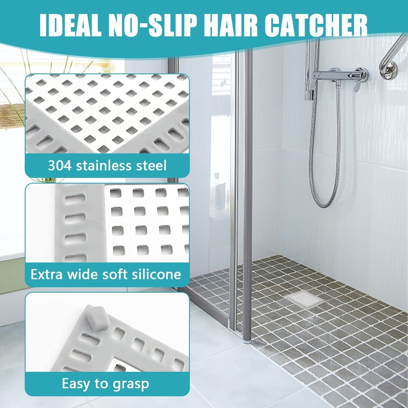 - Unique design: the small and dense holes on the hair strainer shower square can effectively block human or pet hair and other deposits, while the water can drain quickly. The soft silicone edge easily adapts to the floor without scratching hands and feet. Offset small holes at the bottom, can not be missed due to a small amount of water.