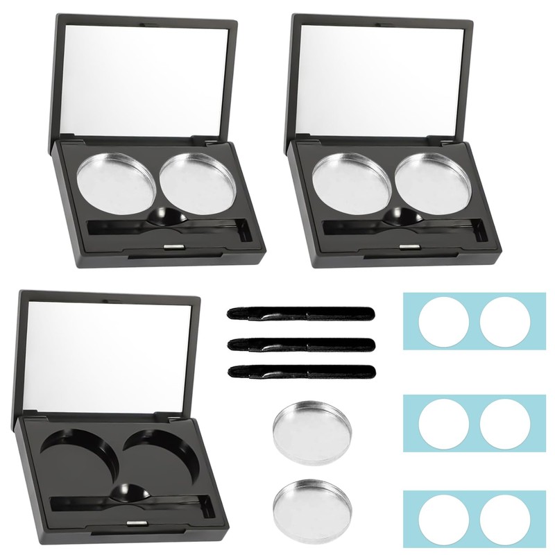 - Package Includes: Makeup Palette Case External Dimension: 62*46*10mm, Inner Circle Diameter: 26mm, Brush Size: 48mm, Package Includes: 3 Empty Eye Shadow Case + 3 Brushes + 6 Aluminum Disc + 6 Double-Sided Stickers