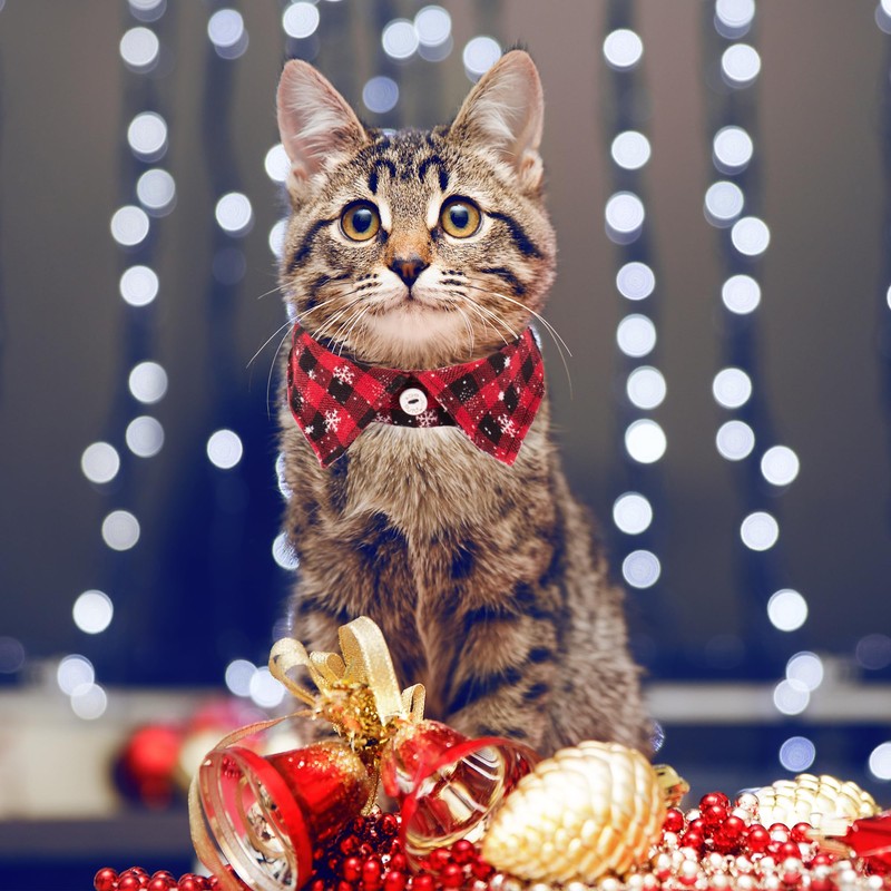 - Christmas Cat Collars with Bow Tie: Classic plaid with snowflake pattern, new style cat formal shirt collar, full of christmas atmosphere. Adorable cat collars make your cat attractive and lovely on christmas party.