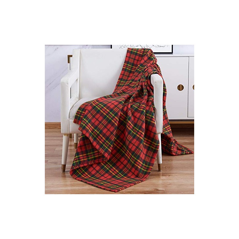 Adore Home Weicher und Warmer bedruckter Fleecedecke für Sofa Bett Reisedecke für Autofahrten -200x240cm, Rot Check