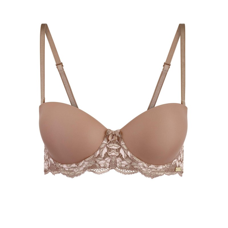 Adore Me Lyza Push Up Strapless Bra - 30A-46DDD Regular & Plus-Size Underwire Balconette Bra, with Lace & Adjustable Straps, Medium Beige, 32C