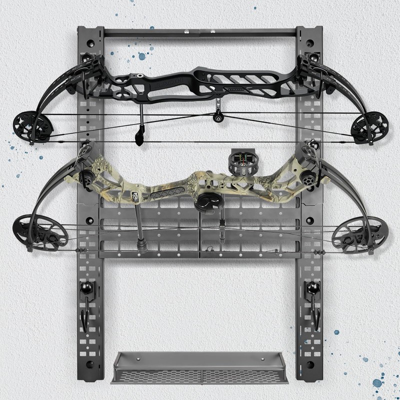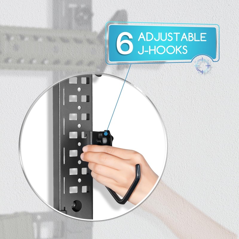 - PROTECTIVE COATING DON’T SCRATCH THINGS - J-hooks are covered with a rubberized protective material to avoid marring any equipment. The gun mounts for wall can hold rifles, shotguns, a couple of pistols, compound bows, vests, belts, etc. An extra shelf at the top holds boxes of ammunition, cleaning kits, and other items.