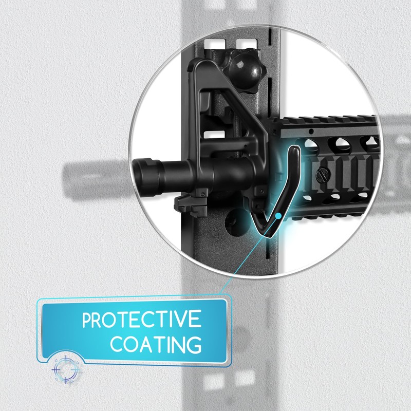 - SERIOUSLY WELL CONSTRUCTED HOLDS ARE SOLID - Our wall mounted gun racks are precision made from a heavy steel and boast a sturdy structure design with a load capacity of up to 120lbs, ensuring long-term durability for storage firearms.