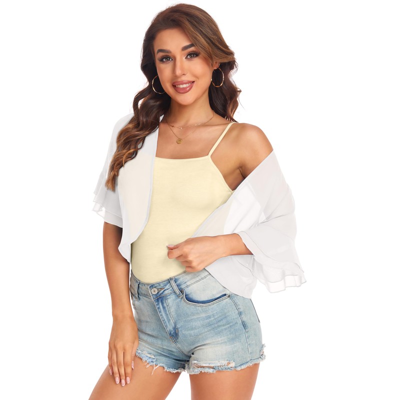- Material: Chiffon cardigan for women dressy is lightweight and soft , bolero fabric is flowy and comfortable for a lively and active vibe. Puff sleeve shawl is a fashion fit, shows your cute and elegant.