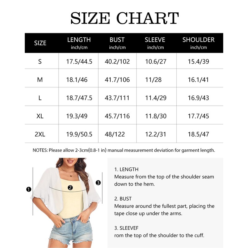 - Features: Shrugs for woman dress, open front, puff sleeve, loose fit, solid color, cropped short styles, a great choice for everyday outings as it hides the flesh on the arms and suitable for petite or plus size girls.
