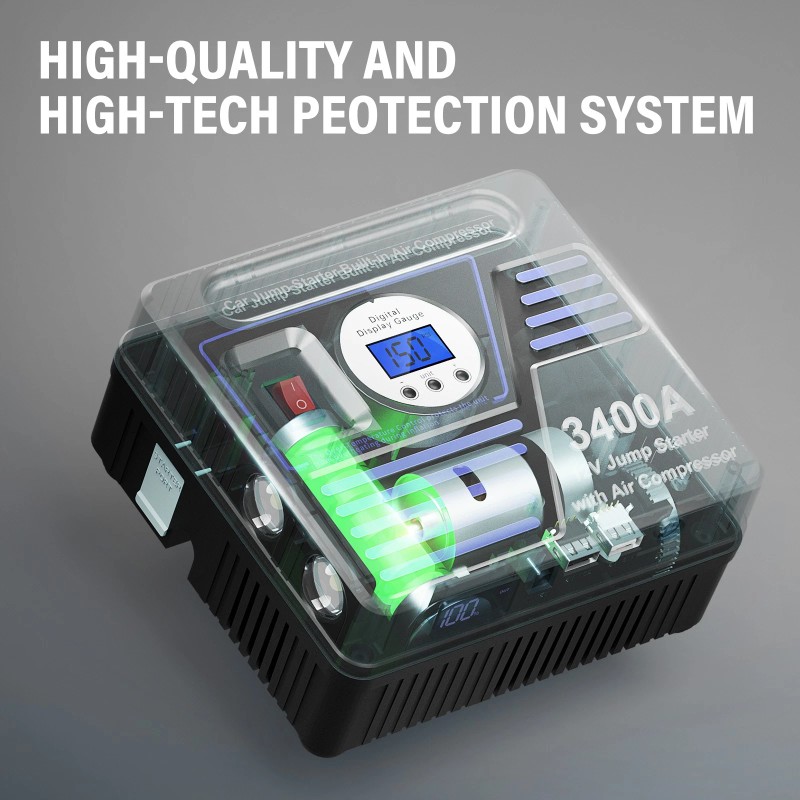 The 3400A Jump Starer Smart Jumper Cable are constructed with all-metal clamps to prevent breakage caused by long-term use. And it has 10 protections, including overcurrent protection, overload protection, overvoltage protection and overcharge protection, making it totally safe for anyone to use