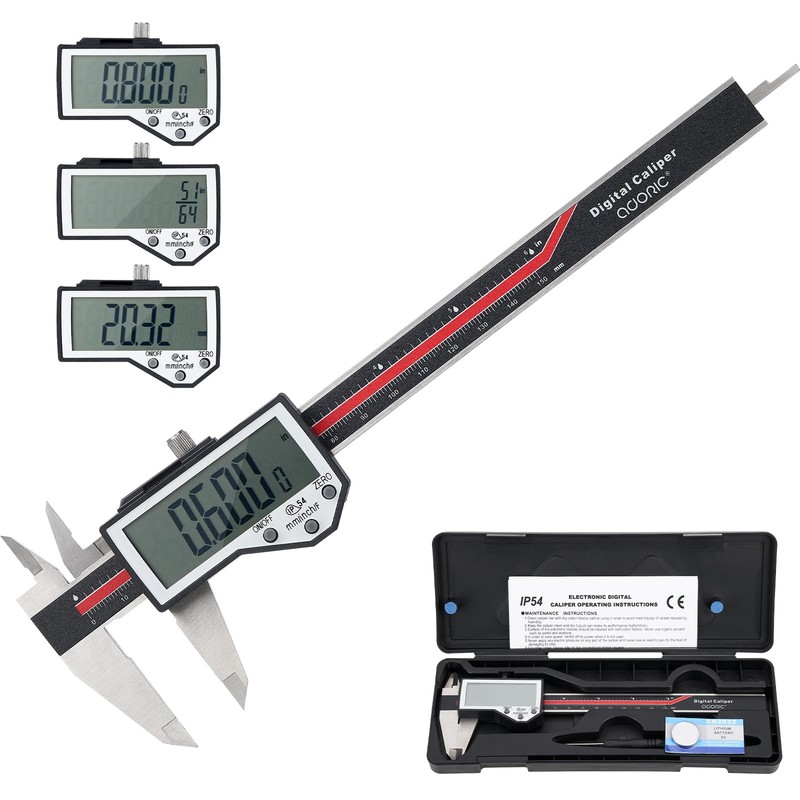 Digital Caliper, 6" Caliper Measuring Tool Extreme Accuracy Waterproof Electronic Vernier Caliper Industrial Stainless Steel Digital, Durable Measuring Tool with Large LCD Screen