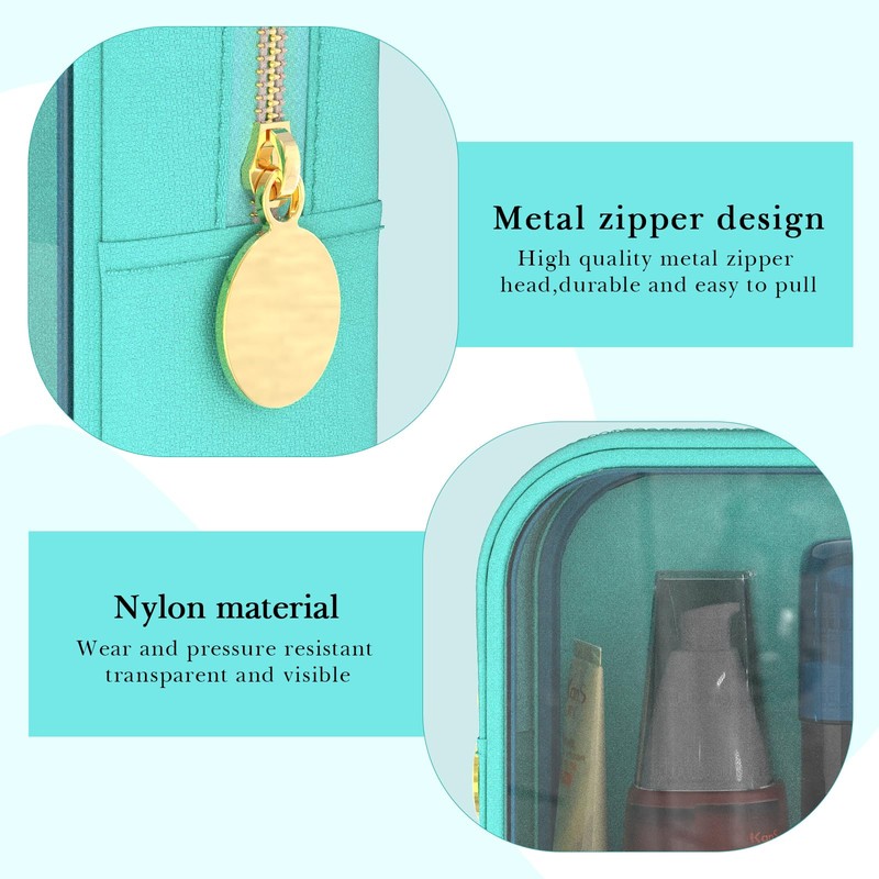 - The toiletry bag has a metal zipper. The smooth and sturdy zipper is suitable for storing essentials and preventing items from falling out of the bag.
