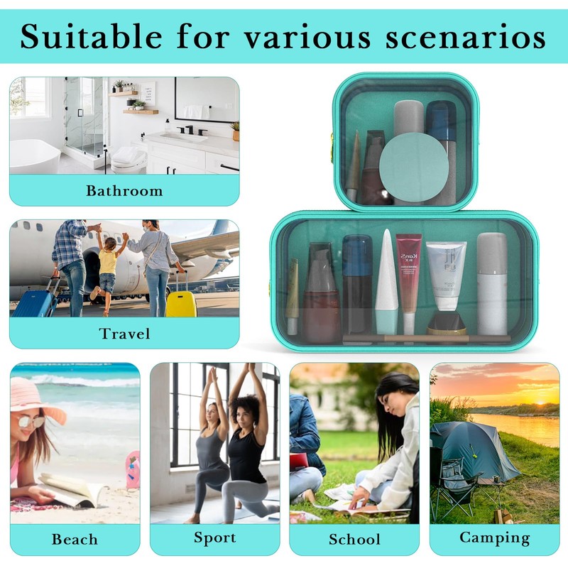 Adorila Clear Makeup Bag Set of 2, TSA Approved Waterproof Travel Cosmetic Bag, PVC Nylon Portable Makeup Organizer Bags for Women (Green), Green