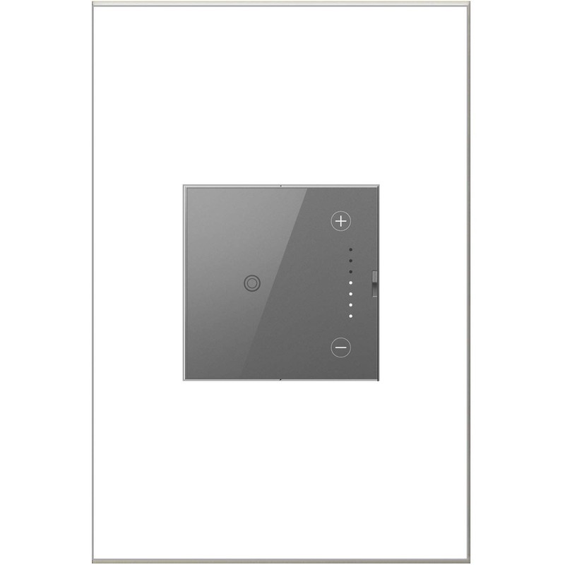 Perfect anywhere you'd like to turn lights on and off with the simplest touch, while also enjoying the ability to dim. Featuring a translucent glass-like face for a modern feel, control your light by simply pressing a finger to the center circle to turn lights on/off, or use the arrows on the side to dim. Use the device on its own to control a light or fixture from a single location, or pair with a 3-way switch to control a single light source from two locations. Pair with the matching Touch Switch for a consistent control-style throughout a room, or your entire house. Made exclusively for use with screwless Wall Plates from the adorne Collection, sold separately.