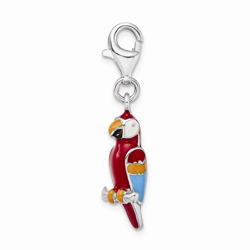 Adornica Diamonds Sterling Silver Rhodium-Plated 3-d Enameled Parrot with Lobster Clasp Charm