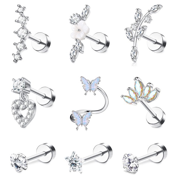- 【Helix Piercing Ohrringe】9 Stück Ohrpiercing-Schmuck-Set, umfasst Schmetterling Stil, herzhaften Stil, Blatt cz Stil, Blume cz Stil, gebogene cz Stil, 3 cz Knorpel Ohrringe Ohrstecker und so weiter.