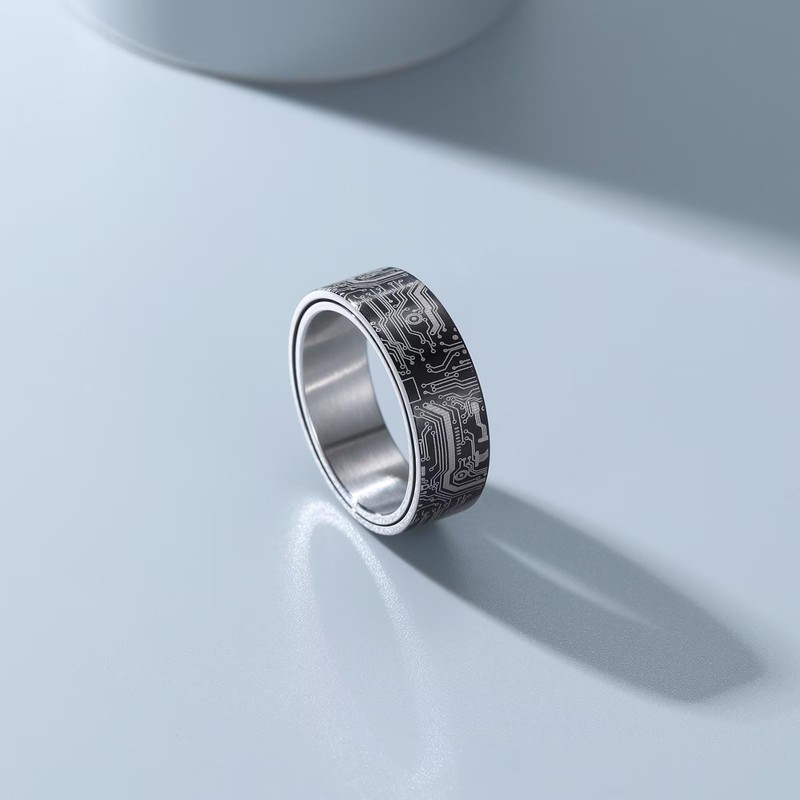 This is our beautiful Circuit board fidget ring. One of a kind ring you won’t find anywhere else.Circuit board engraving around the entire ring that other rings simply can't compete with.