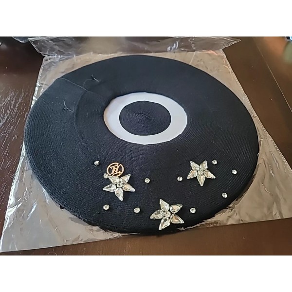 This stylish black beret by Adrienne Vittadini is the perfect accessory to add a touch of elegance to any outfit. The beret features a solid pattern and is made of a comfortable nylon and polyester blend fabric with stretch accents. It has a rhinestone accent that adds a touch of glamour to the overall design. The beret is one size fits all and is suitable for various occasions, including dressy events.