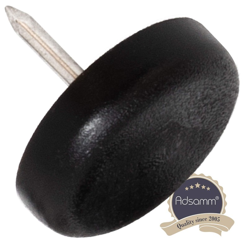 Adsamm® / 32 x Glides in plastic with nail | Ø 0,87'' (Ø 22 mm) | black | round | Premium quality furniture sliders with nail by Adsamm®