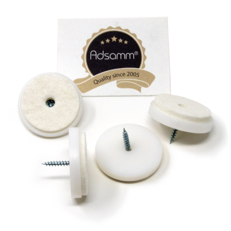 Adsamm® / 4 x felt glides with screw / white / diameter 40 mm / round / furniture glides for screwing in premium quality