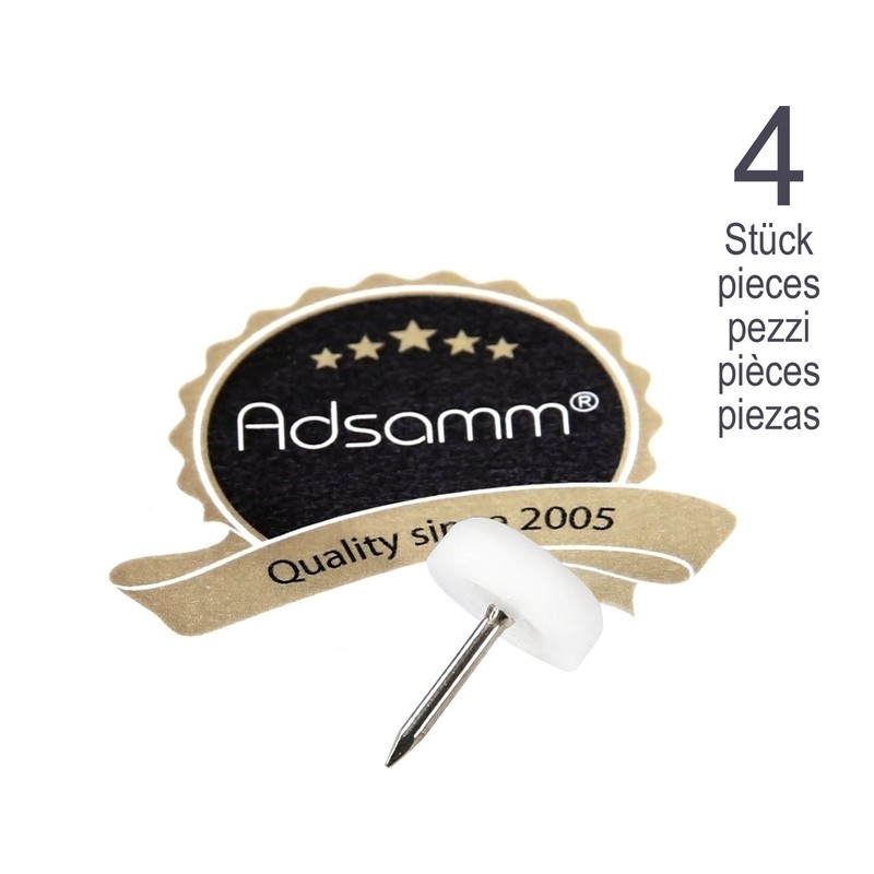 • Box contents: 4 plastic gliders with nail, also available individually or in sets of 4, 16, 32 and 100 pieces -> (click on Adsamm