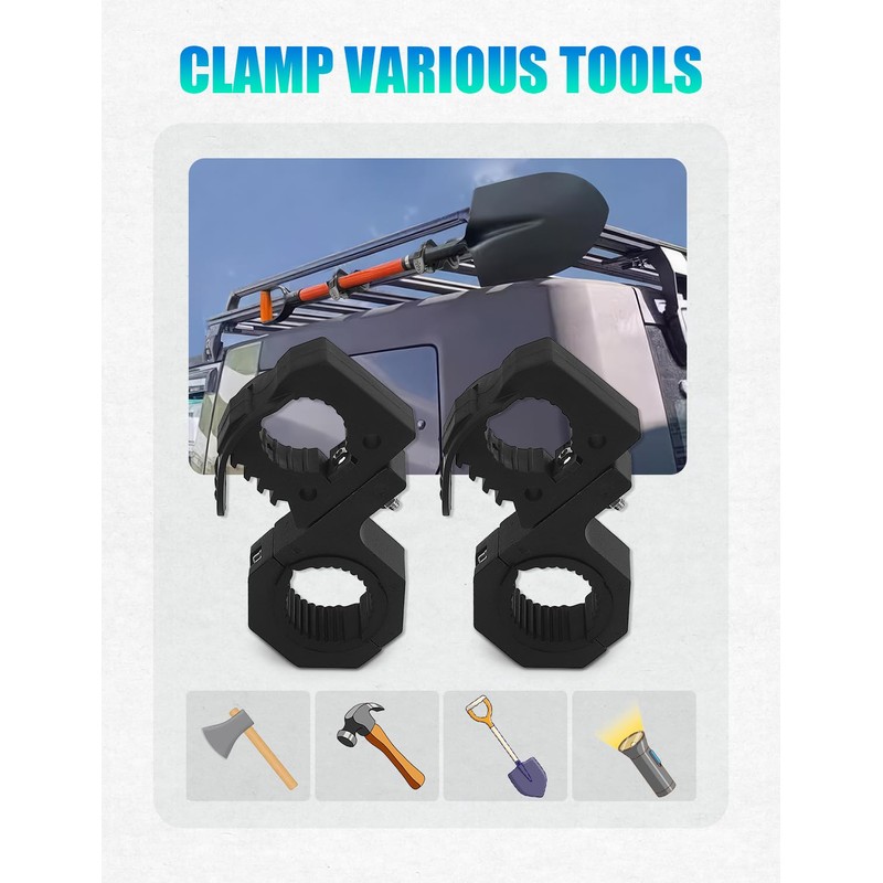 - 【Universal Fitment】Quick release clamp mount can be used on most off-road vehicles, motorcycles, boats, RV, UTV, ATV etc. Roll bar clamp mounting brackets is mainly used to fix tools, such as flashlights, axes, shovels and other outdoor tools.