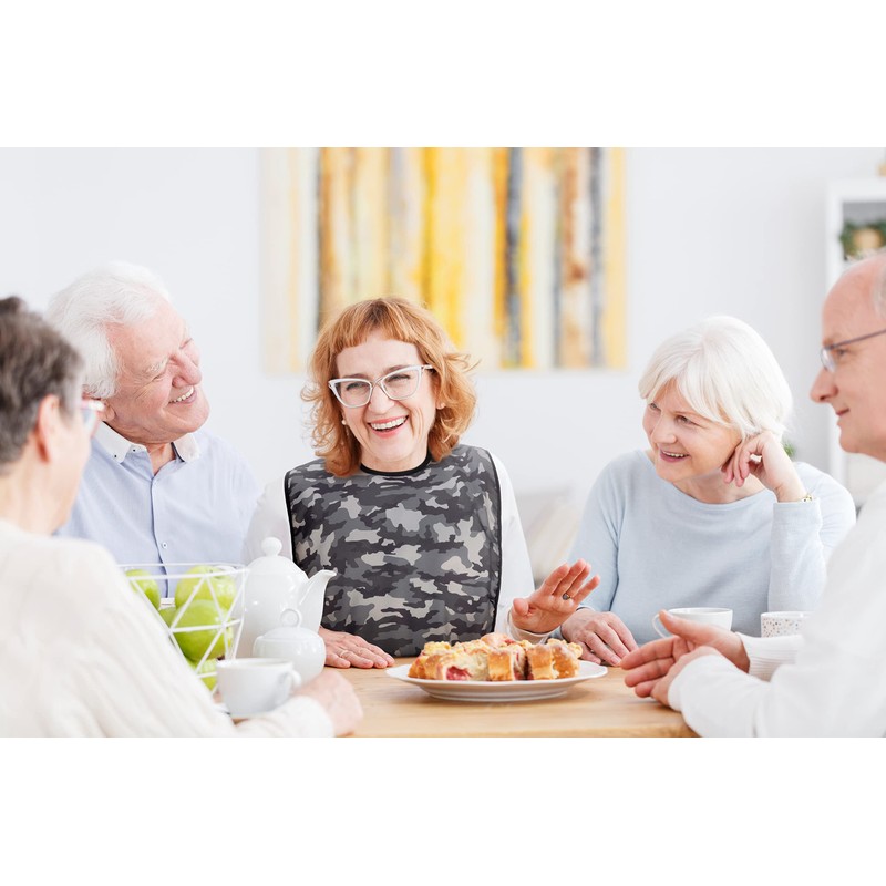 Adult Bibs for Eating: Reusable Adult Size Bib for Men and Women - Washable Clothing Protector with Crumb Catcher Pocket - Gray Camo Edition