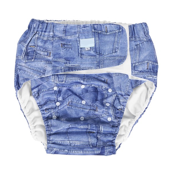 Adult Diaper Adjustable Washable Elderly Diaper Reusable Incontinence Nappy PantsA09 Denim