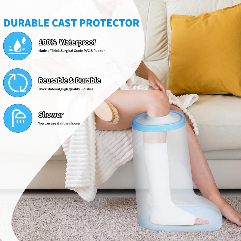 - Reusable and thick leg shower cast protector. Durable surgical rubber that won’t rip or tear.Non slippery like saran wrap and plastic bag are. Light, hygiene, washable material, will not stick to your leg.