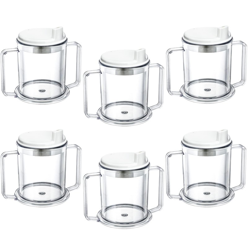 Adult Sippy Cup 2 Handle Plastic Mug 10 oz No Spill Cups for Elderly Spill Resistant Lightweight Drinking Cup with Easy to Grasp Handles Sip Cups for Hot and Cold Beverages (6 Pcs)