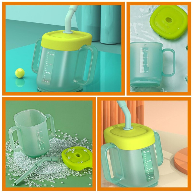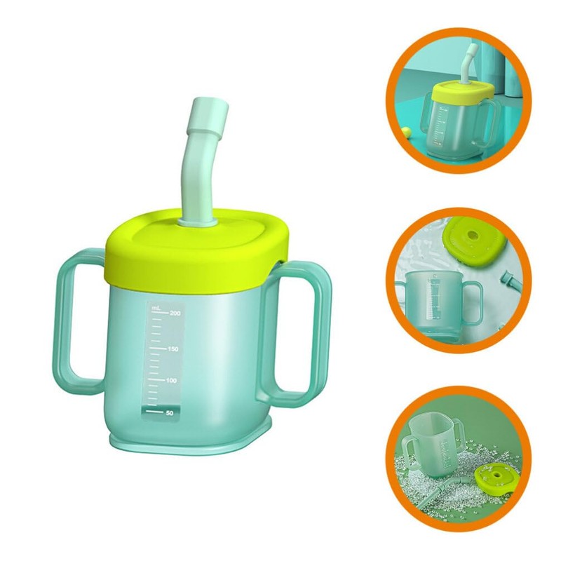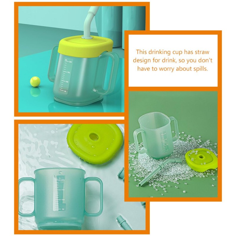 Adult Sippy Cup,Independence 2-Handle 200ML Plastic Mug Drinking Cup with Straw Lid Handicap Cups for Limited Mobility Handicapped Accessories