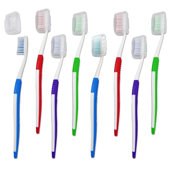 Adult Toothbrushes with Covers ~ Bulk Pack of 8 Manual Toothbrushes ~ Medium Firm Bristles