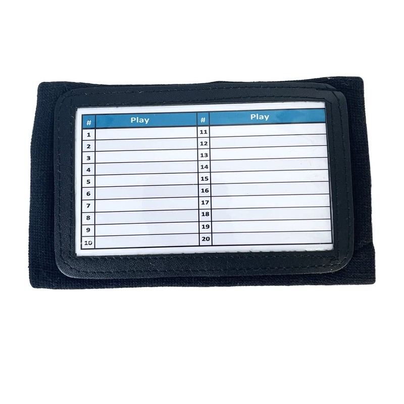 - Playbook wristband can holds 3 play cards with a velcro close.