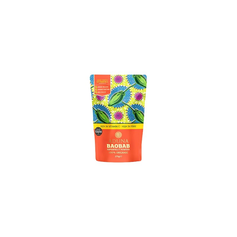 Aduna Baobab Superfruit Powder is the fruit of the Tree of Life in Africa, baobab is one of the most nutrient-dense foods in the world. It dries naturally on the branch to produce a 100% natural, nutrient dense raw wholefood.