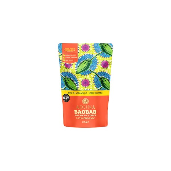 Aduna Baobab Superfruit Powder is the fruit of the Tree of Life in Africa, baobab is one of the most nutrient-dense foods in the world. It dries naturally on the branch to produce a 100% natural, nutrient dense raw wholefood.