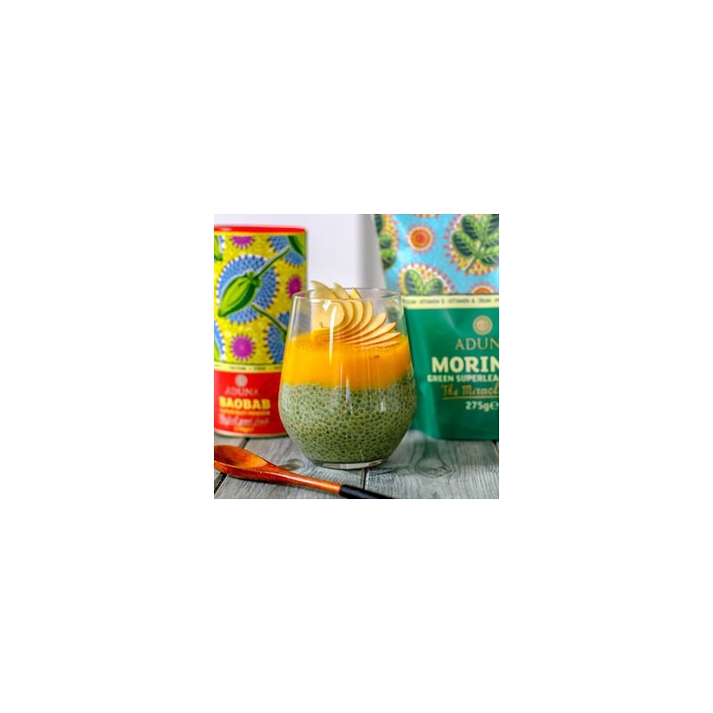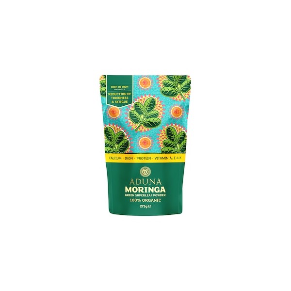 Aduna Moringa Green Superleaf is one of the most nutrient-dense foods on the planet. It is a rich source of plant protein and is high in many essential Vitamins and Minerals including Protein, Iron and Vitamin A.Iron contributes to the reduction of tiredness and fatigue.