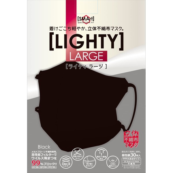 Advanced 3D Non-Woven Mask, Light Black, Large Size, Approx. 6.0 x 5.0 inches (15.3 x 12.9 cm), SMArt LLB-01, 30 Sheets