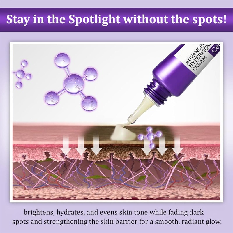 - 【Dark Spot Corrector for Radiant Skin】Advanced Anti-Hyperpigmentation Cream visibly fades hyperpigmentation, melasma, acne scars, freckles, and age spots. It brightens dull skin, evens tone, and promotes a glowing complexion—perfect for daily use in your face care routine.
