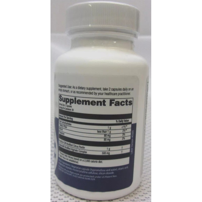 Ingredients include Dietary Fiber, Sodium, Potassium, PectaSol-C Citrus Pectin, Algimate, Vegetarian Capsule, Stearic Acid, Magnesium Stearate, Microcrystalline Cellulose, Silicon Dioxide.