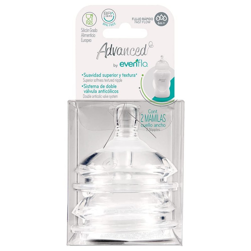 Advanced by Evenflo, Mamila Anticólicos, Cuello Ancho, Flujo Rápido, Paquete de 2 Piezas, MEX, 2 count, 1