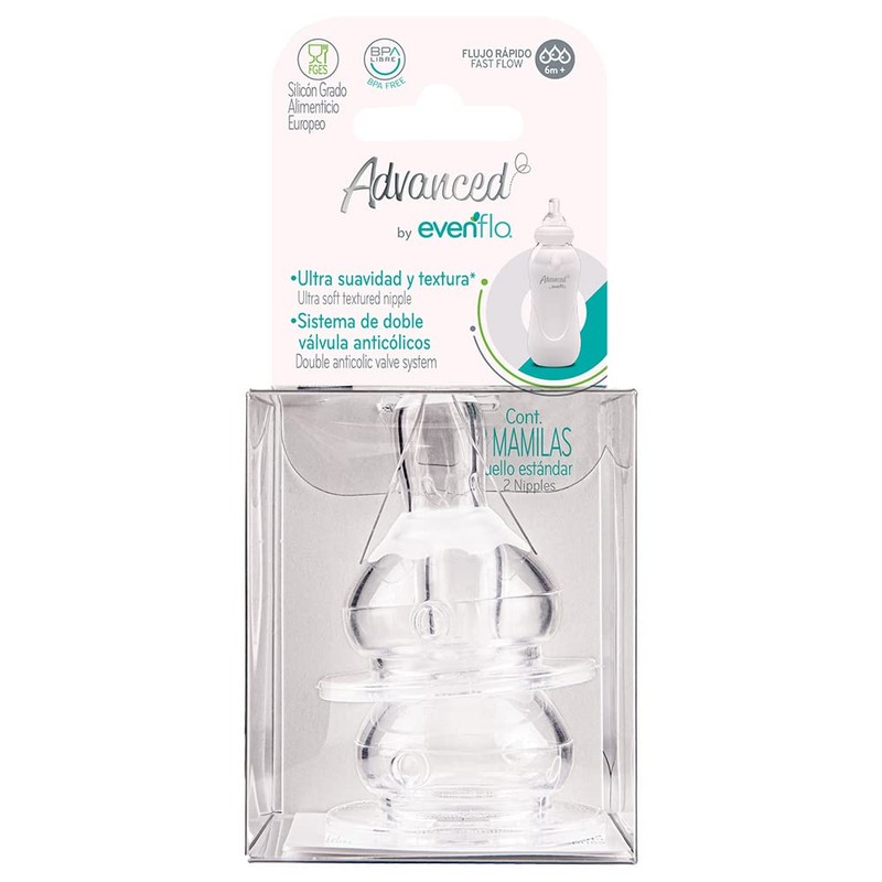 Advanced by Evenflo, Mamila Anticólicos, Flujo Rápido, Cuello Estándar, Paquete de 2 Piezas, MEX