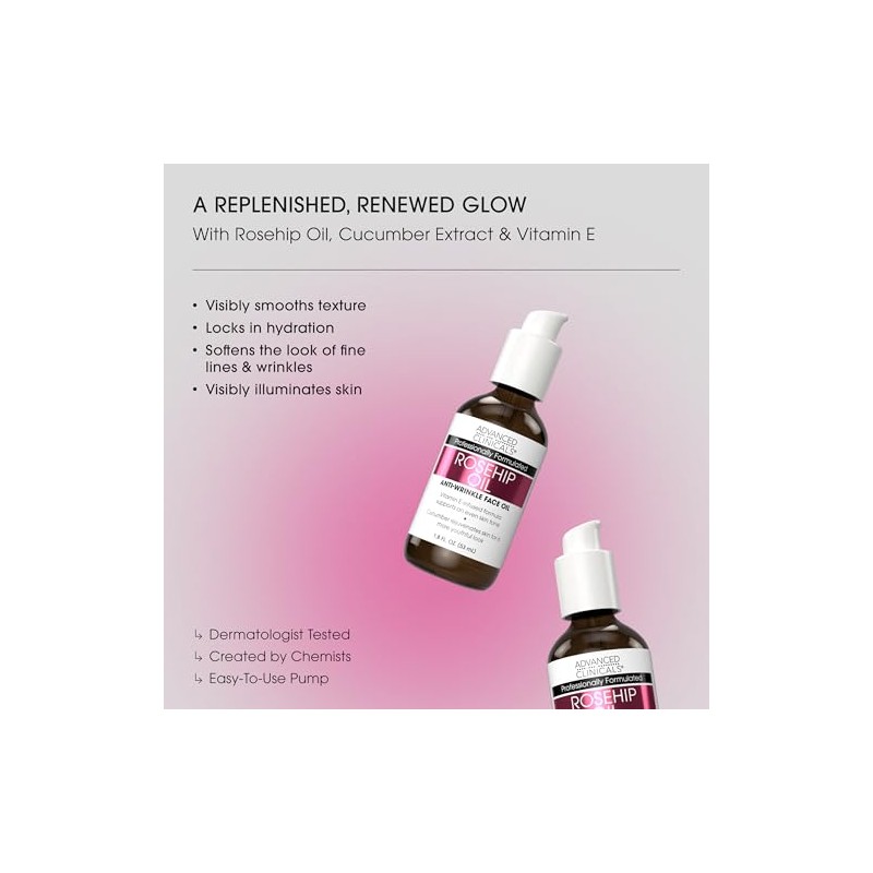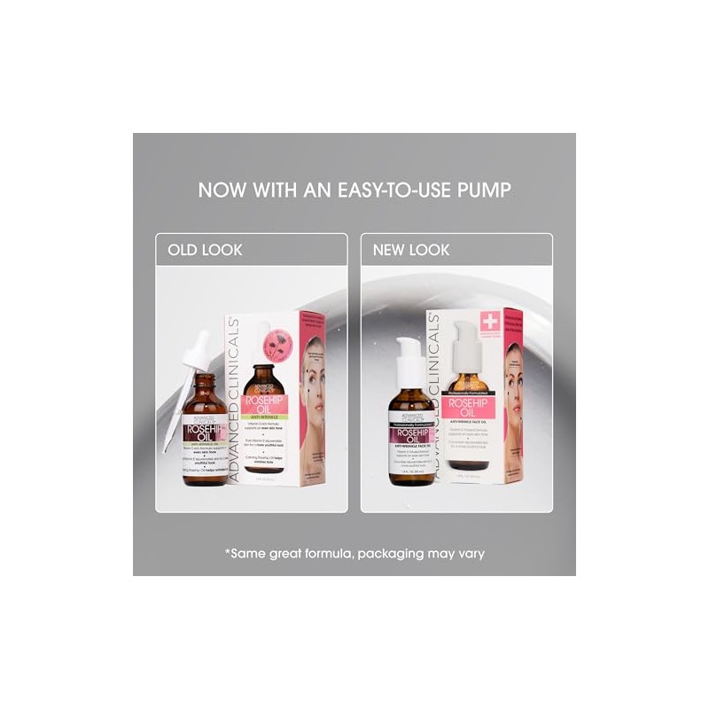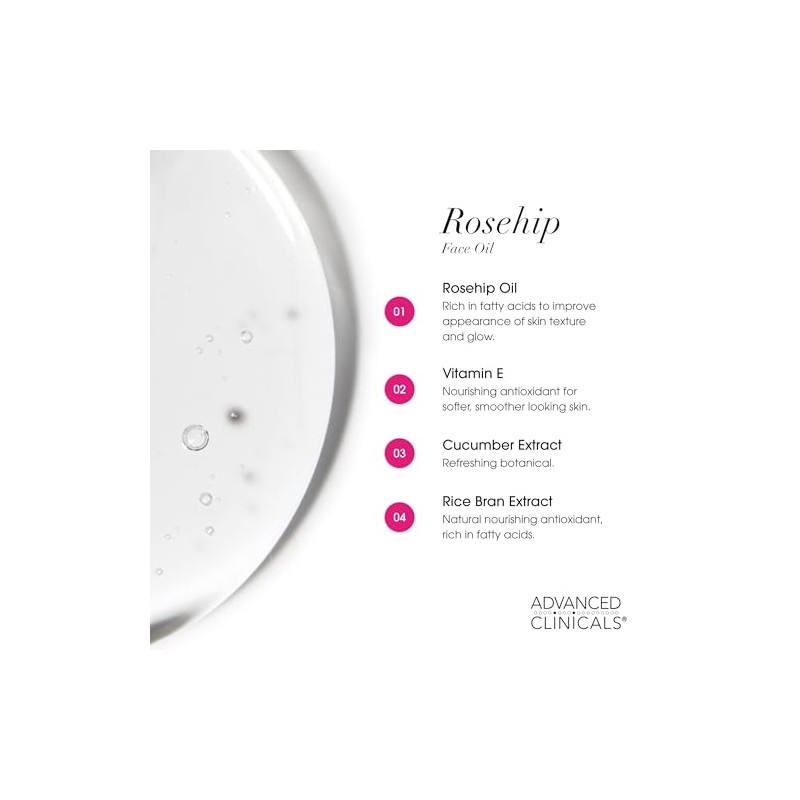 Advanced Clinicals Rosehip Oil Anti-wrinkle Face Oil with Vitamin C and Vitamin E for Sun Damage, Age Spots and Wrinkles. Large 1.8oz Bottle. by Advanced Clinicals