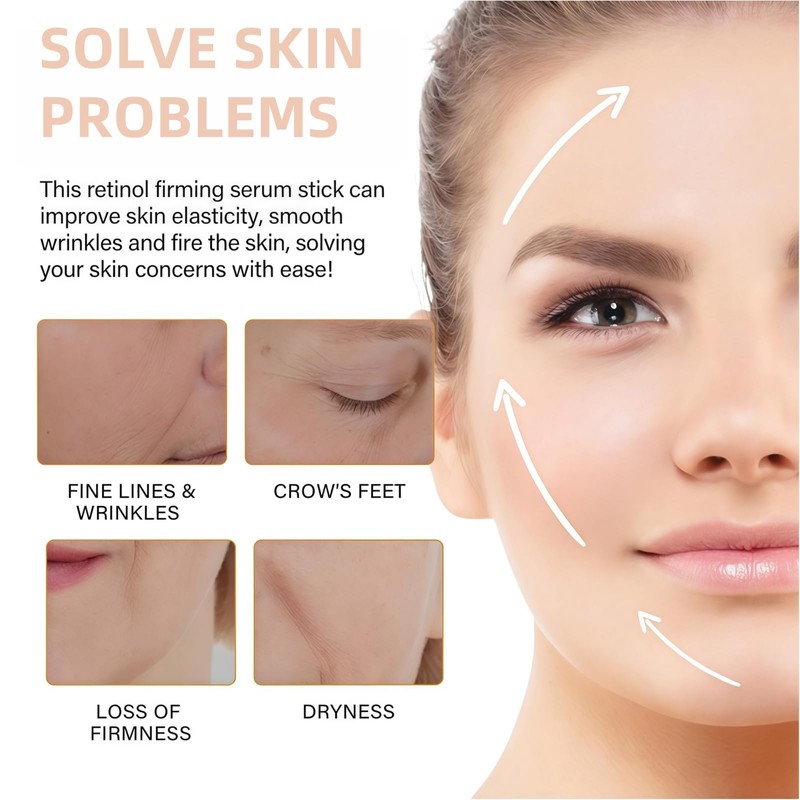 - 3-IN-1 TARGETED ANTI-AGEING FORMULA:This retinoid cream helps to firm and smooth the skin.The retinol face cream, combined with retinol, effectively reduces fine lines and tights loose and sagging areas.Our retinol firming serum stick can solve various skin problems, such as reducing wrinkles, fine lines and dark circles.This collagen peptides firming serum stick can effectively reduce wrinkles and keep the skin in youthful state.This retinol serum suitable for daily care of all skin types
